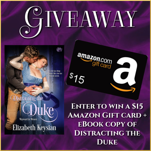 Win a $15 Amazon Gift Card & an eBook copy of Distracting the Duke by Elizabeth Keysian!